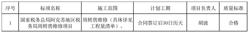 | 标题 | 国家税务总局阿克苏地区税务局周转房维修项目成交结果公告 | ||