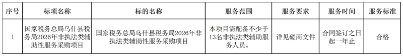 二、项目名称:国家税务总局乌什县税务局2026年非执法类辅助性服务采购项目
