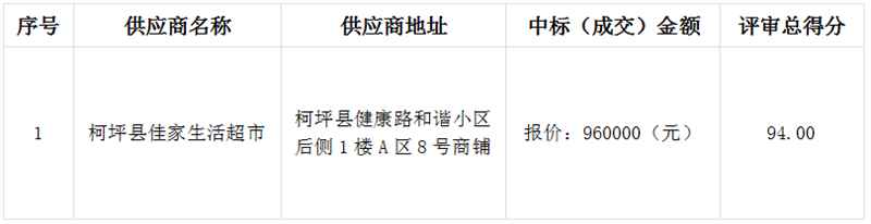 | 标题 | 国家税务总局柯坪县税务局食堂食材采购项目中标(成交)结果公告 | ||
