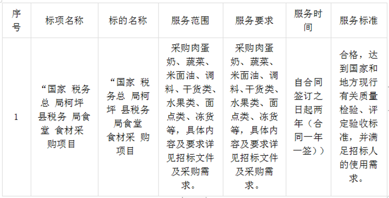 二、项目名称:国家税务总局柯坪县税务局食堂食材采购项目