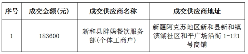 | 标题 | 国家税务总局新和县税务局2026年餐饮服务项目成交结果公告 | ||
