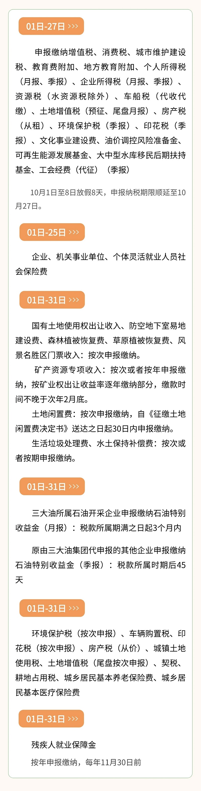 2025年10月征期日历 时间:2025年10月9日 12:07
