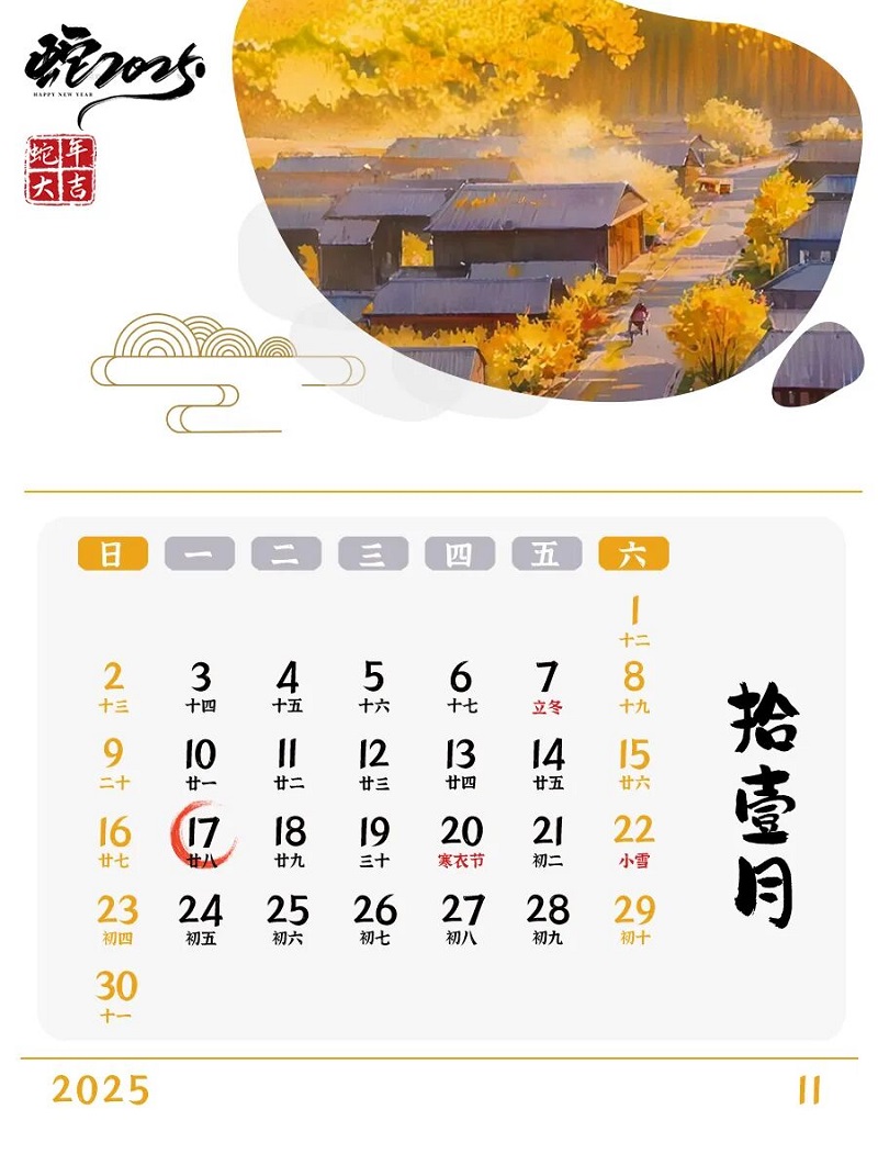 2025年11月征期日历 时间:2025年11月7日 16:33