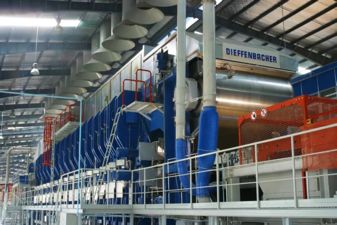 万华禾香集团股份有限公司绿色无醛人造板生产线中的连续平压机。