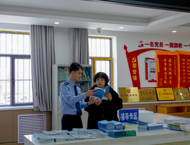 国家税务总局北屯税务局办税服务厅为新办纳税人现场辅导合规经营要点,第35个全国税收宣传月启动以来,北屯税务局通过“开业第一课”定制税收法规“必修课”,在办税服务厅辅导专区为纳税人提供“一对一”合规辅导,针对新办企业财务人员涉税政策、办税操作等详细讲解,同时为法定代表人、财务负责人以及办税人员赠送合规要点相关书籍资料,为企业起步即规范保驾护航。