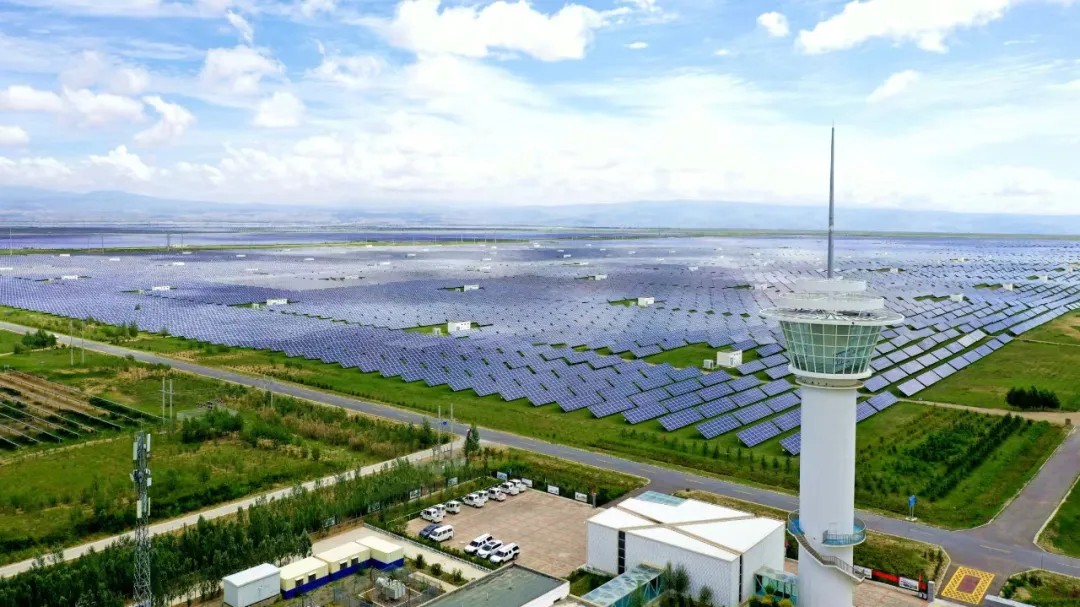 广袤戈壁之上,蔚蓝光伏板如海洋般铺陈至天际。