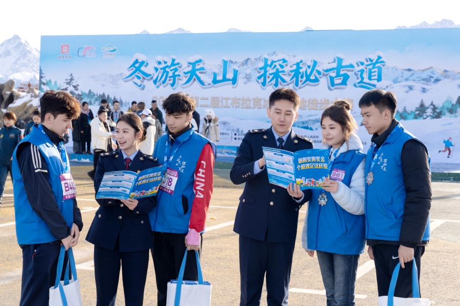 12月28日上午,“冬游天山·探秘古道”2025年江布拉克第二届冰原雪地徒步大赛鸣枪开跑。来自各地的1268名徒步爱好者汇聚于此,用脚步丈量冰雪,以热情点燃寒冬,共同绘就“冰雪+体育+文旅”的融合图景。在活动现场,税务部门设置“税费宣传驿站”,为参赛选手和观赛群众普及常用的税法知识,讲解税费政策,现场答疑解惑。