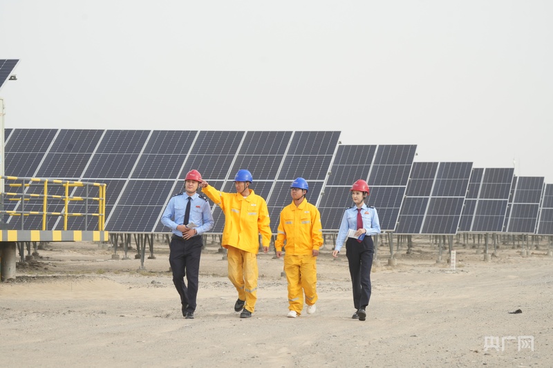 国家税务总局和田地区税务局干部深入辖区光伏企业项目现场,实地调研企业生产经营与项目建设进度,精准对接企业涉税需求 (央广网发 王乐 摄)