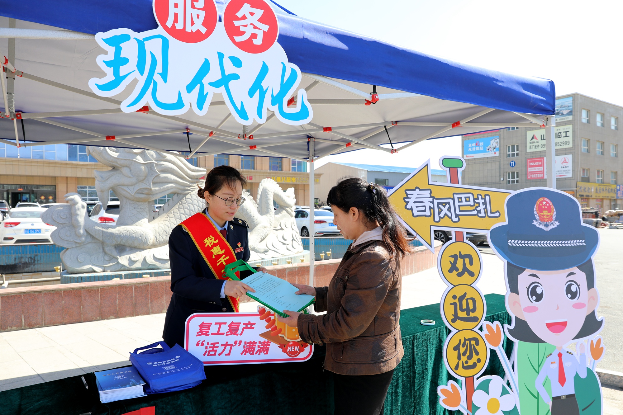 “如果在税收政策或者办税方面有什么疑惑,您可以扫一下这个二维码,我们会动态更新发布最新的办税指引。”业务骨干吕志耐心地向过往群众推介“税企连心卡”,发放紧贴居民生活的办税资料。