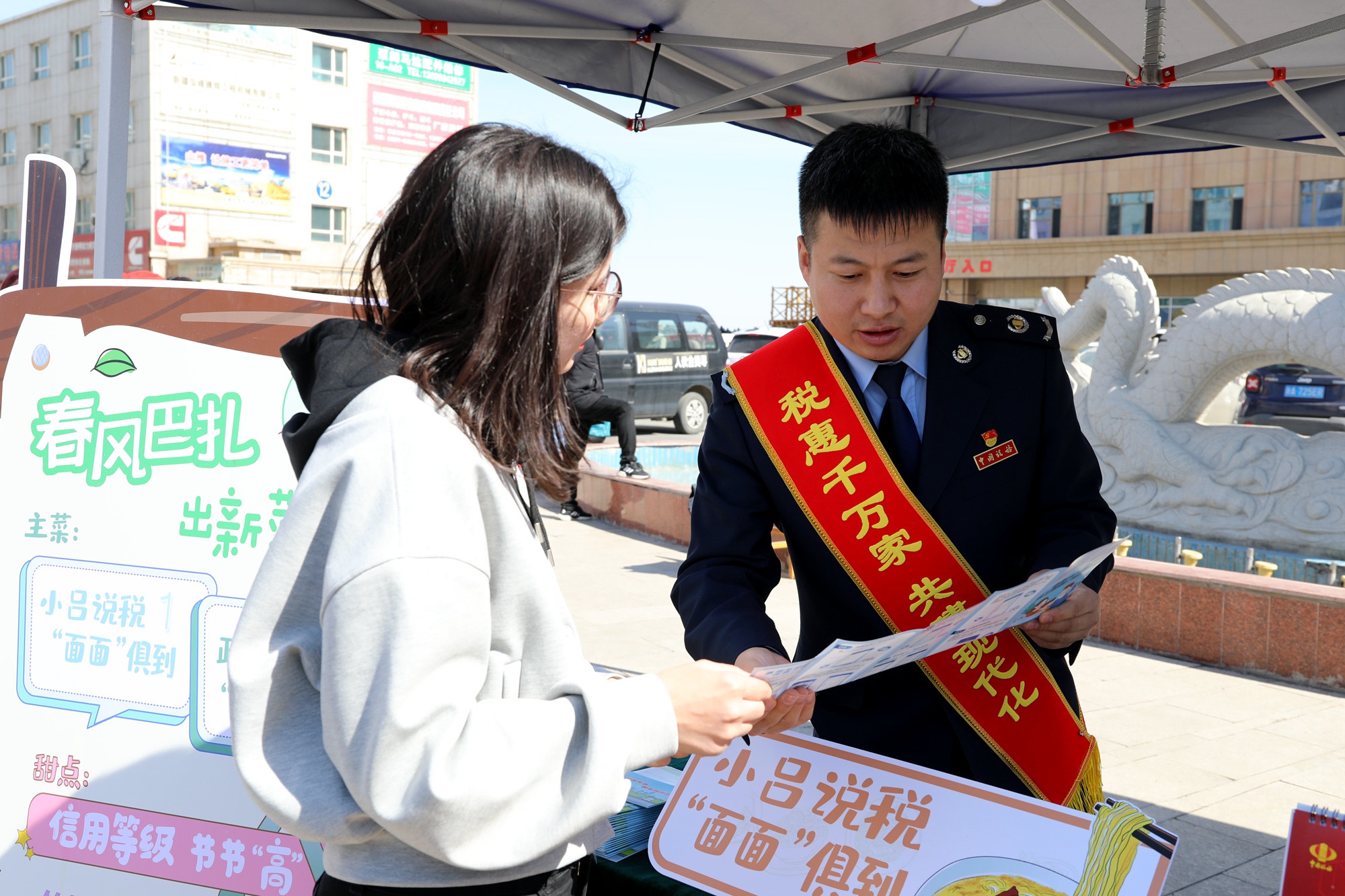图为 工作人员在开展税收宣传答疑