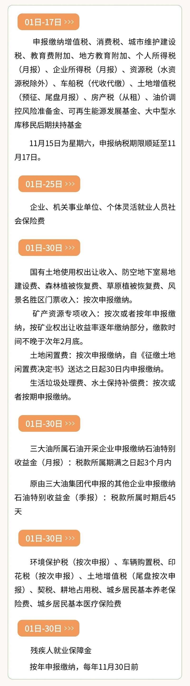2025年11月征期日历 时间:2025年11月3日 11:12