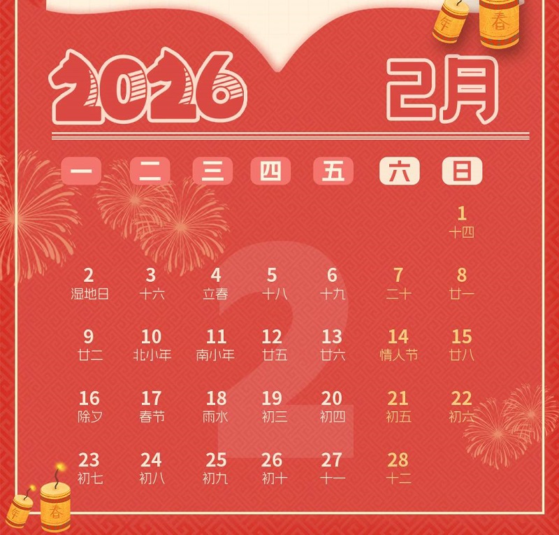 2026年2月征期日历 时间:2026年2月2日 16:14