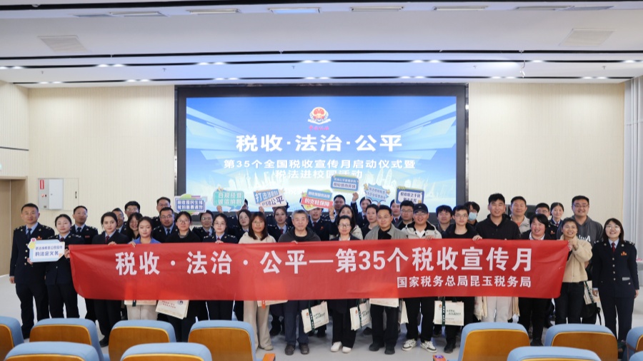 4月1日,国家税务总局昆玉税务局在昆玉职业技术学院举办第35个全国税收宣传月启动仪式暨税法进校园活动,正式拉开2026年度税收宣传月系列活动序幕。本次活动紧扣“税收・法治・公平”主题,聚焦校园师生涉税需求,精准开展政策辅导与税法普及。