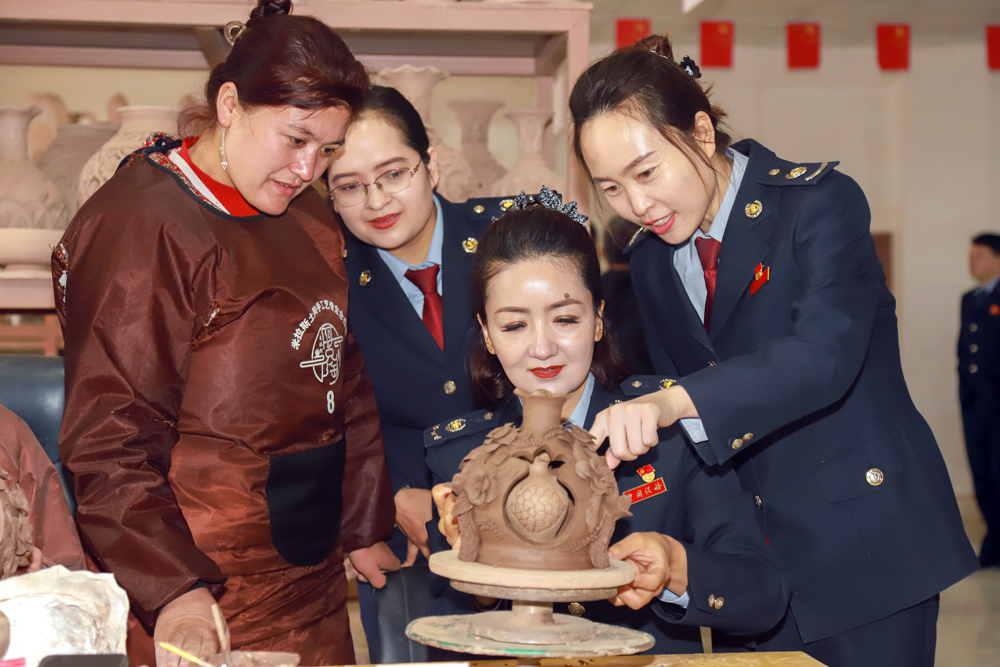 图为 阿克陶县税务局开展“指尖匠心·陶韵巾帼”活动,女干部体验非遗土陶