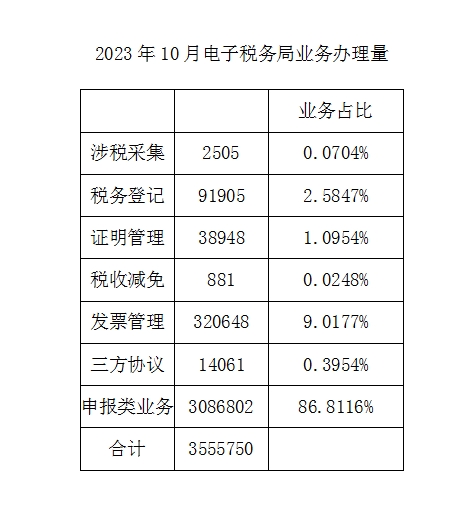 2023年10月电子税务局业务办理量 时间:2023年11月1日 15:43