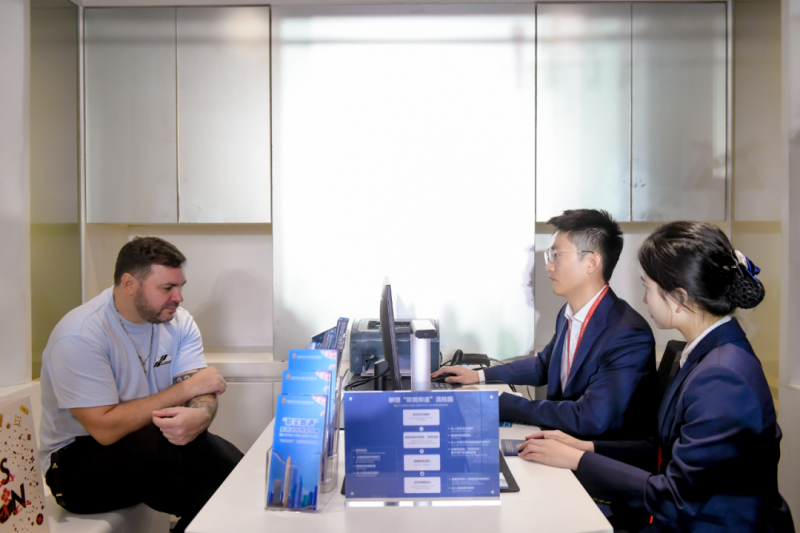 图为深圳罗湖万象城工作人员为境外旅客办理离境退税“即买即退”业务。
