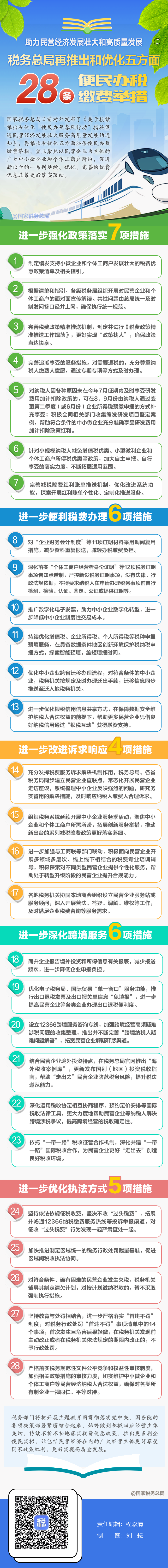 | 税务总局再推28条便民办税缴费举措助力民营经济发展!一图了解具体内容   时间:2023年8月21日 11:42    稿源:税务总局新媒体 + 大中小 【打印】
