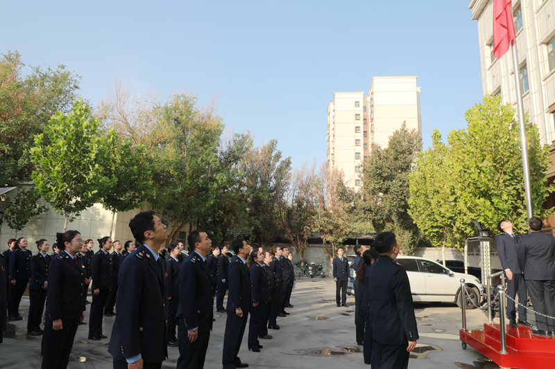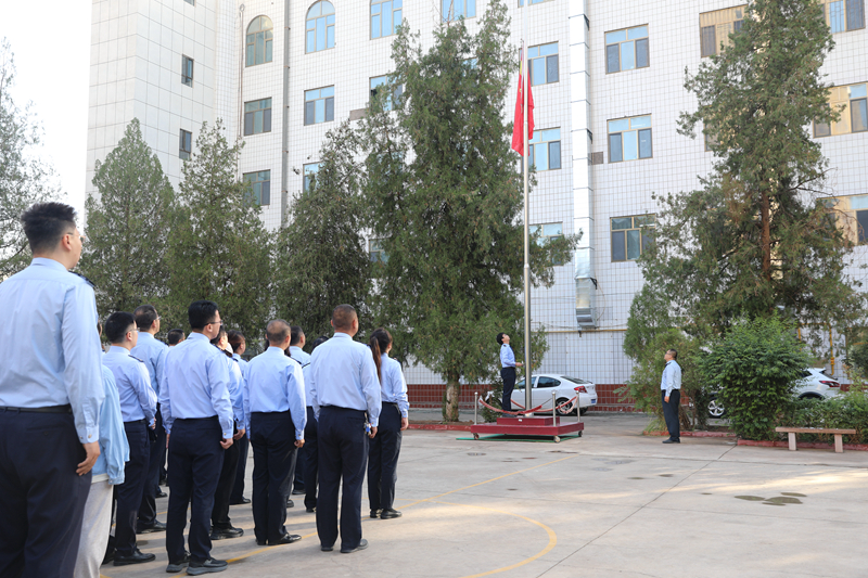 10月9日,国庆假期结束后的首个工作日,为弘扬爱国主义精神,厚植爱国情怀,吐鲁番市税务系统举行了升国旗仪式,共同庆祝中华人民共和国成立76周年和新疆维吾尔自治区成立70周年。