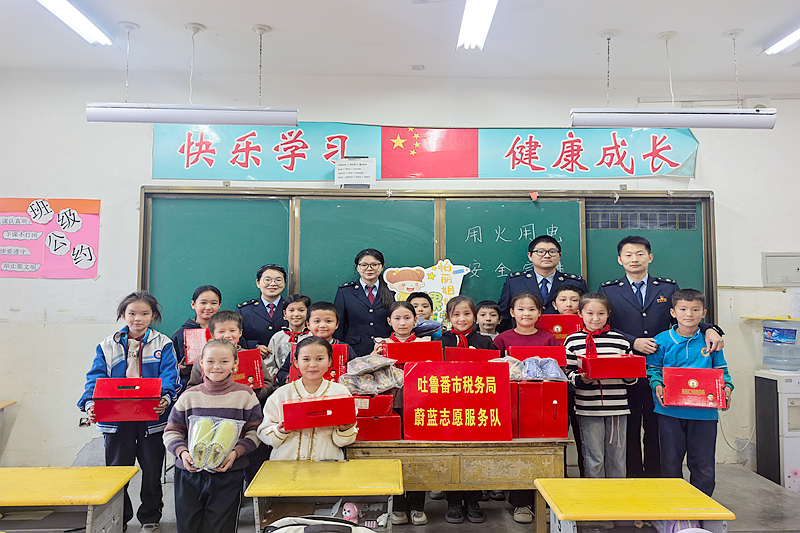 近期,吐鲁番市税务局“蔚蓝”志愿服务队走进恰特喀勒乡庄子小学,开展了一场以“安全‘童’行 暖足暖心”为主题的教育关爱活动,为孩子们带去实用的安全知识和冬日的温暖。