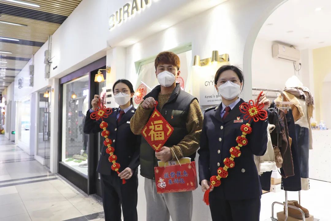 在上海,松江区税务局开展迎新年主题活动,“80后”青年宣讲团走进松江大学城沿街商铺,为个体工商户们送上新年祝福,共庆元旦佳节。