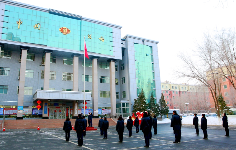 图为 乌鲁木齐县税务局组织全体局领导和各部门代表举行迎新春升国旗仪式