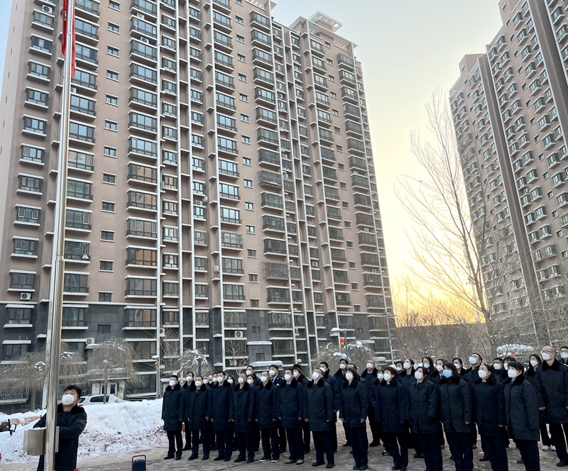 图为 1月28日10点,乌鲁木齐市税务局机关在育才巷社区组织迎新春升国旗活动