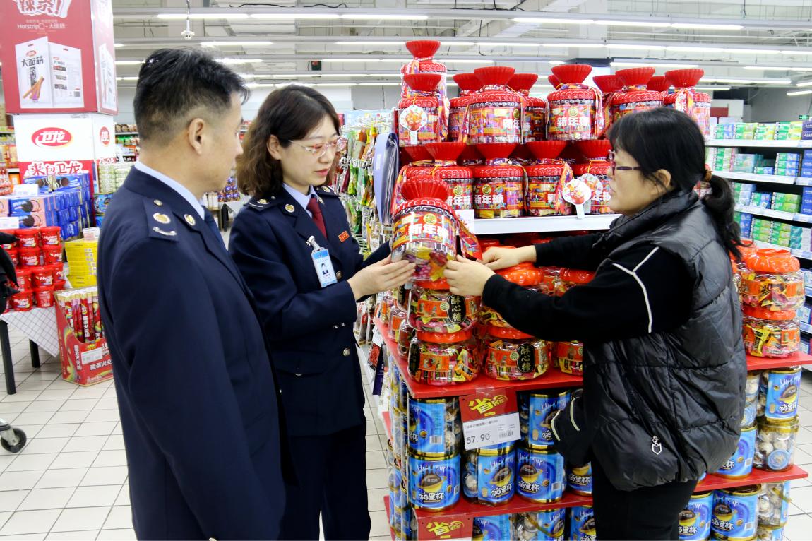 图为 天山区税务局税务人员前往辖区商超宣传政策并了解消费品零售情况