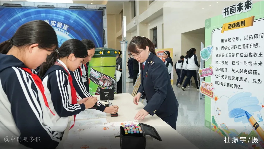 国家税务总局北京市密云区税务局举办“税启少年·法护公平”青少年普法活动。在法治研学环节,税务干部与同学们一起用彩笔绘出对税收的理解。