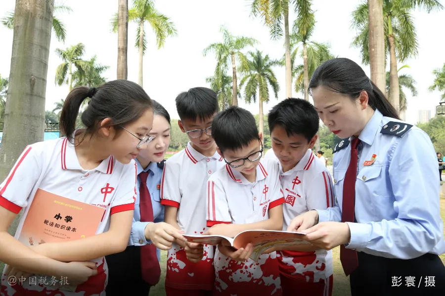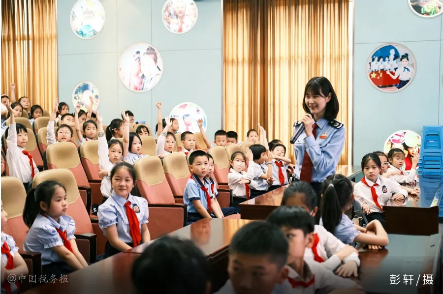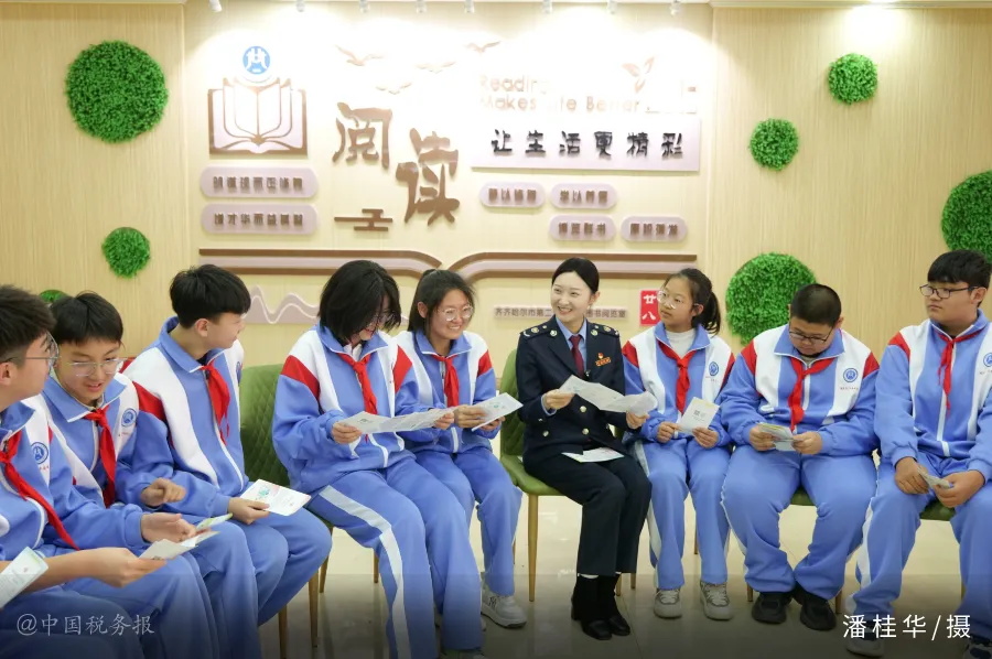 国家税务总局齐齐哈尔市建华区税务局组织干部来到该市第二十八中学,为青少年开展“税收第一课”。税务干部以“学校的新操场从哪里来”“社区附近的公园谁来建”等问题为切入点,为学生讲解税种分类及税收“取之于民、用之于民”的本质。