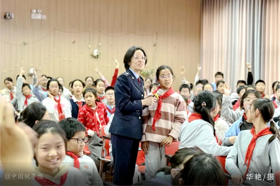 国家税务总局上海市闵行区税务局组织干部来到闵行区汽轮科技实验小学,开展税法进校园活动。活动中,税务干部将税法基本知识融入课堂,与同学们现场开展趣味互动。
