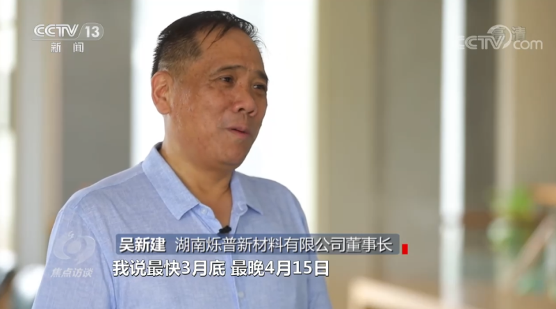湖南烁普新材料有限公司董事长 吴新建:我说最快3月底,最晚4月15日,发不了工资,我拿我自己的家当抵了,也要给你们发工资,我们工人还没有闹情绪。