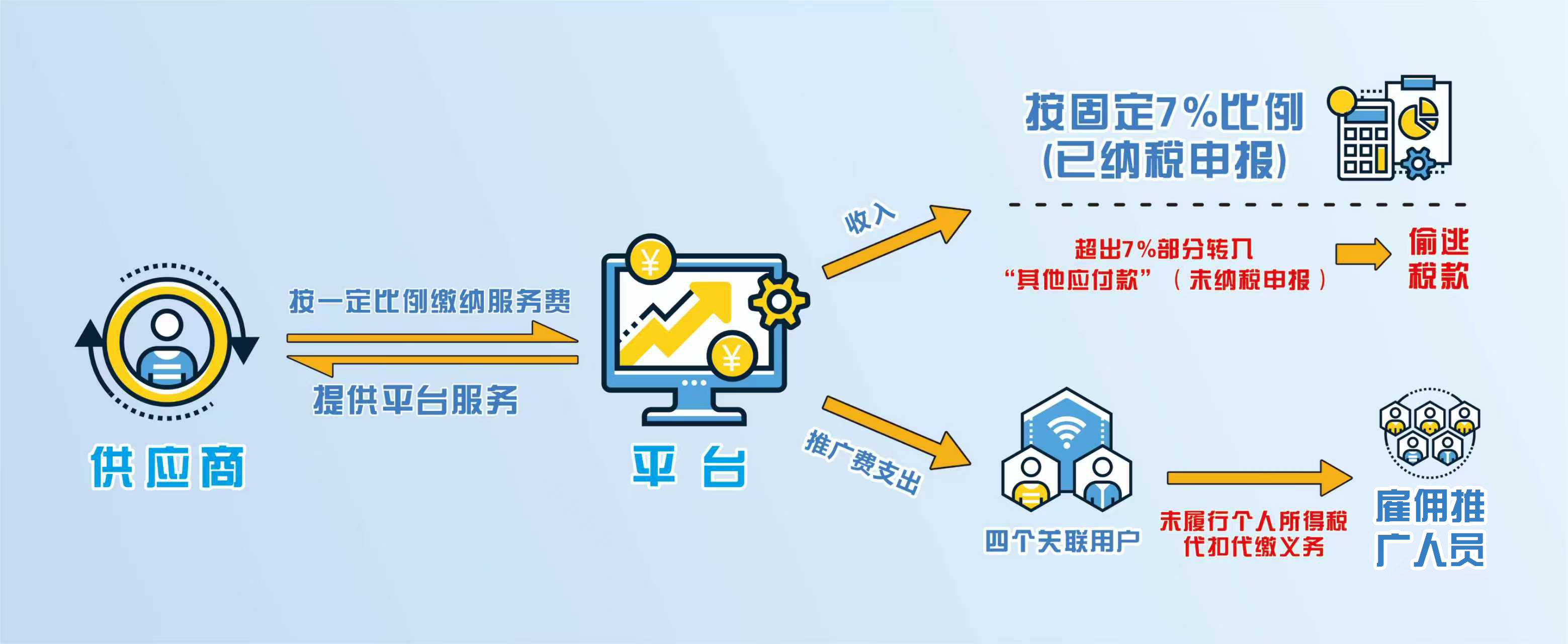 结合取证情况,检查人员进一步追踪资金流向,发现“嫲嫲团”公司为增加其线上交易平台用户数量,雇佣符合推广要求的消费者并支付劳务报酬。但为规避频繁资金流转触发银行的重点监控,该公司先将劳务报酬转入公司负责人4个亲戚朋友的个人账户,再由这些个人账户分别向雇佣的推广人员支付。通过追溯资金流,检查人员确认这些打入关联人账户的资金最终确实流向了推广人员。而这部分资金“嫲嫲团”公司并未履行代扣代缴个人所得税义务,造成国家税款流失达472.75万元。