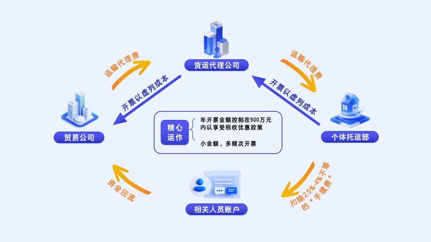 原来,办税人员孟凡蕊在长期从事税务代理的过程中,了解到部分贸易公司需要成本入账,高报贸易额从而取得财政补贴。在利益驱使下,本应依法诚信执业的她伙同薛磊通过购买他人身份信息的方式,成立了多个货运代理公司,为有开票需求的贸易公司虚开发票,并按虚开金额扣除2.5%-4%不等的手续费攫取非法利益。为解决货物代理公司成本问题,他们又成立个体托运部,向货物代理公司开具增值税普通发票以虚列成本,以此来达到少缴税款的目的。