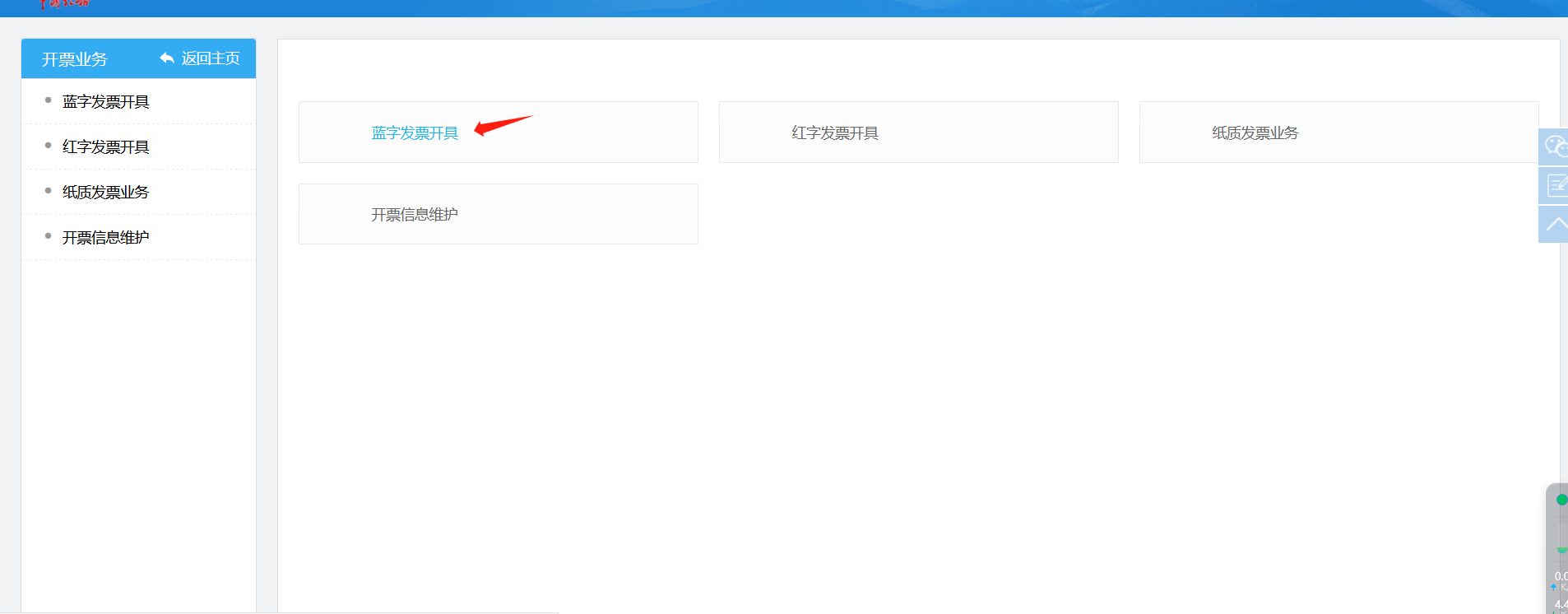 ②进入开票业务界面后,点击【蓝字发票开具】功能,如图2所示