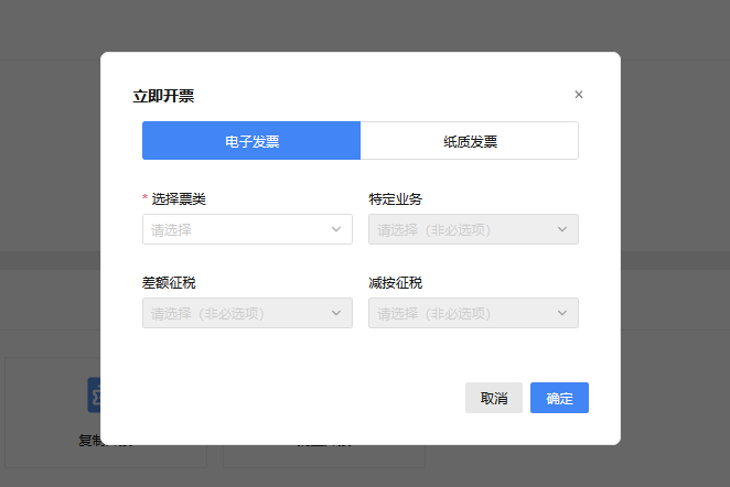 ④弹出立即开票窗口,默认选择电子发票,如图 4所示;