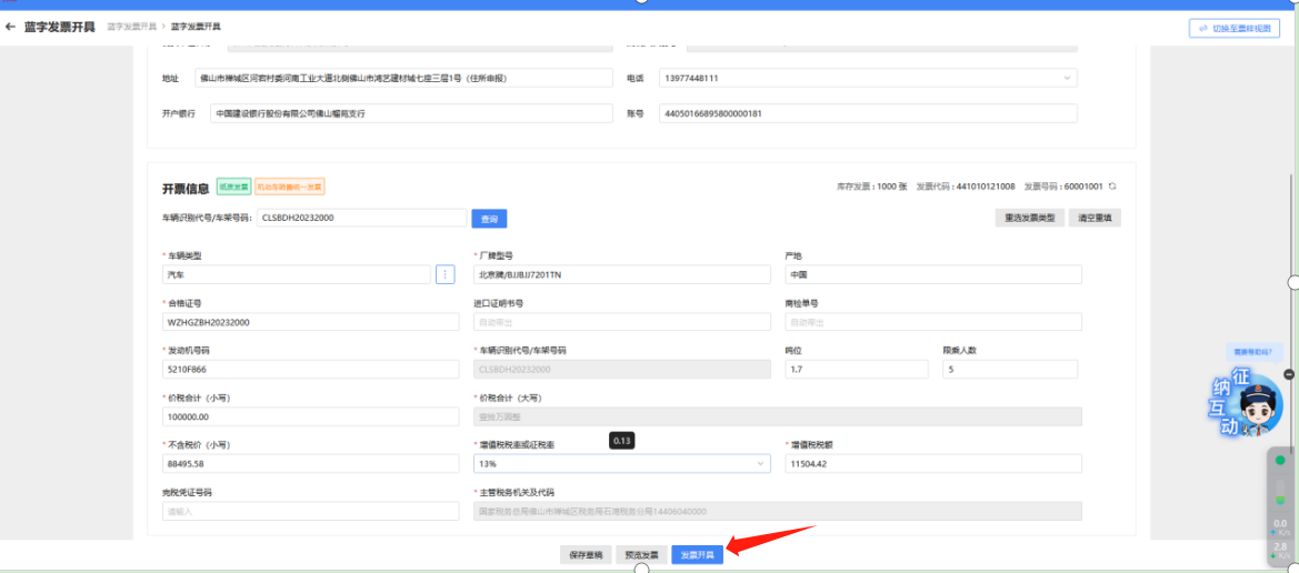⑨纳税人依据实际情况手动补充车辆类型、价税合计、增值税税率或征收率等信息,如图 12所示
