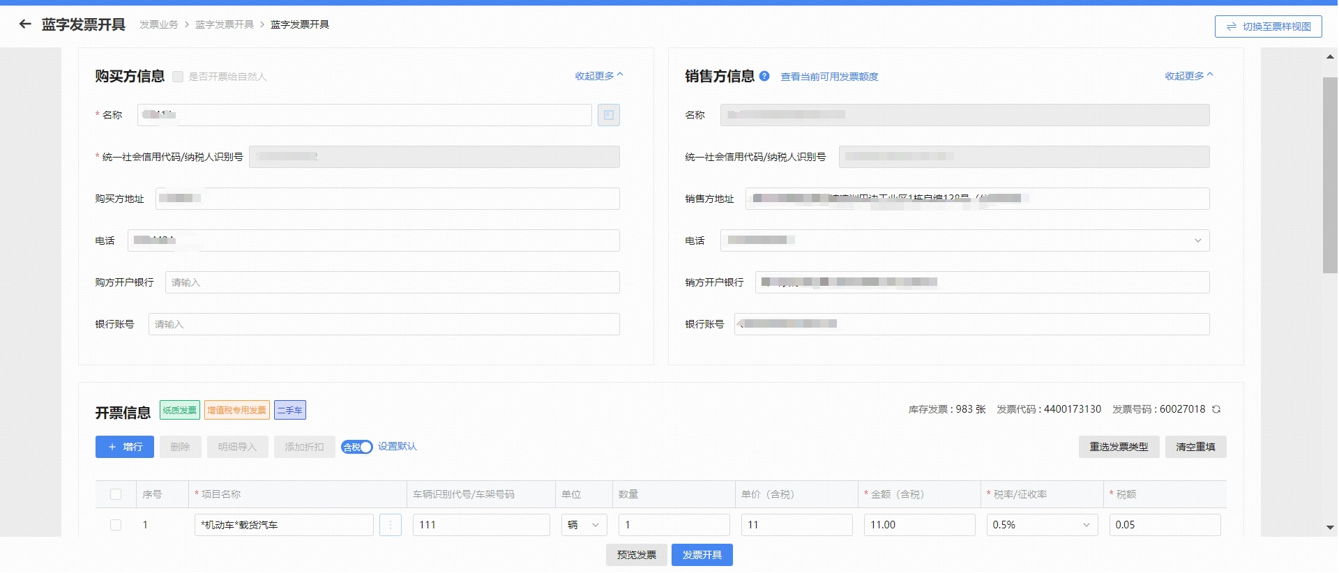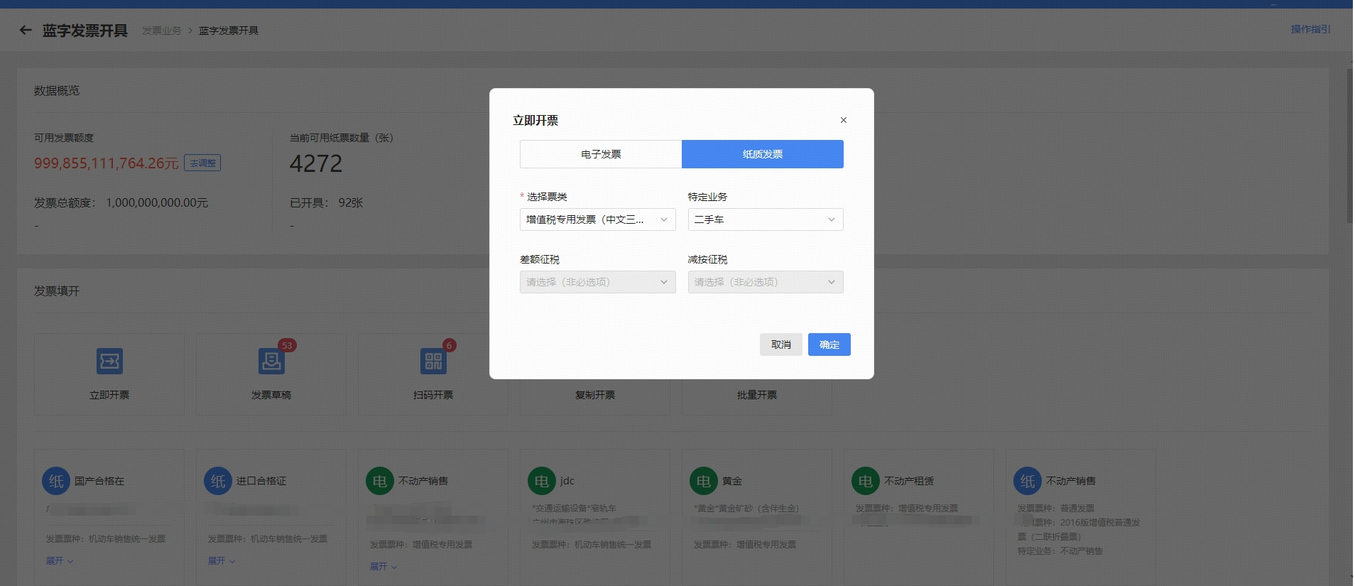 当二手车经销企业发生二手车销售行为,在开具“二手车销售统一发票”后,可通过该模块开具电子发票(增值税专用发票)、电子发票(普通发票)、纸质发票(增值税专用发票)、纸质发票(普通发票),以下简称为“二手车专普票”。