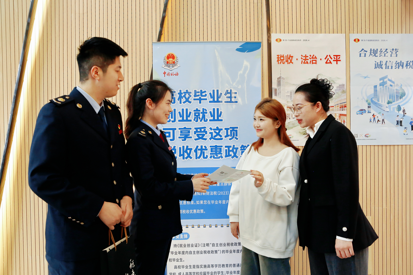 奎屯市税务干部走进新疆应用职业技术学院,开展高校毕业生就业创业税收优惠政策宣讲活动。