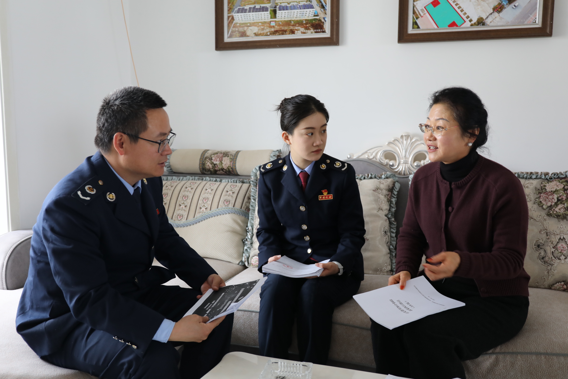 图为当地税务干部为企业开展政策辅导